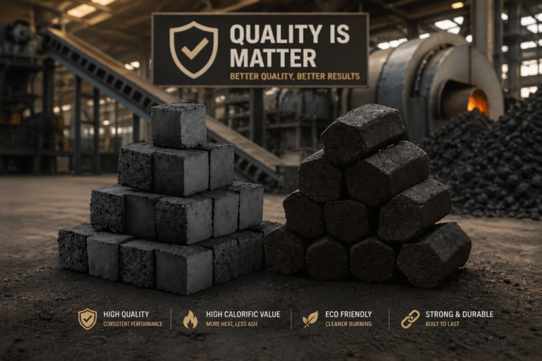 Beyond burn duration, production quality also plays a major role. Even when using the same raw material, differences in carbonization, density, moisture control, and manufacturing consistency can significantly impact performance. High-quality briquettes are engineered to maintain stable heat and longer burning time, while low-quality products often fail to deliver consistent results.